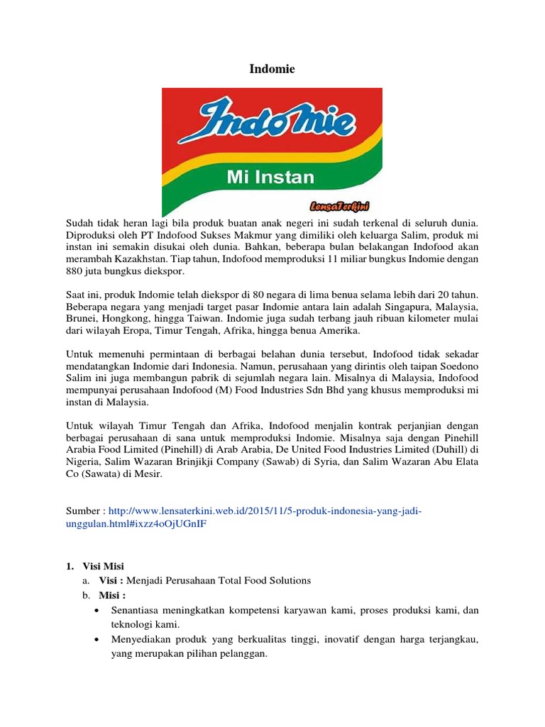Indomie from imgv2-2-f.scribdassets.com Your trust is our main concern so these ratings for indofood (m) food industries sdn bhd are shared 'as is' from employees in line with our community guidelines. Some of its subsidiaries are indofood (m) food industries sdn. Indofood was founded in 1968 as lambang insan makmur, an instant noodles business, with its brand indomie launching in 1972. Please consult with your administrator. Pt indofood sukses makmur tbk and its subsidiaries manufacture instant noodles, wheat flour, baby food, food seasonings, coffee, cooking oil, and snacks. Indofood cbp sukses makmur tbk 168 annual report 2015. Mulai dari bumbu hingga racikan produk olahan dihadirkan merek ini. Dapatkan harga indofood indonesia untuk produk makanan & minuman indofood ✅ temukan promo & diskonnya!